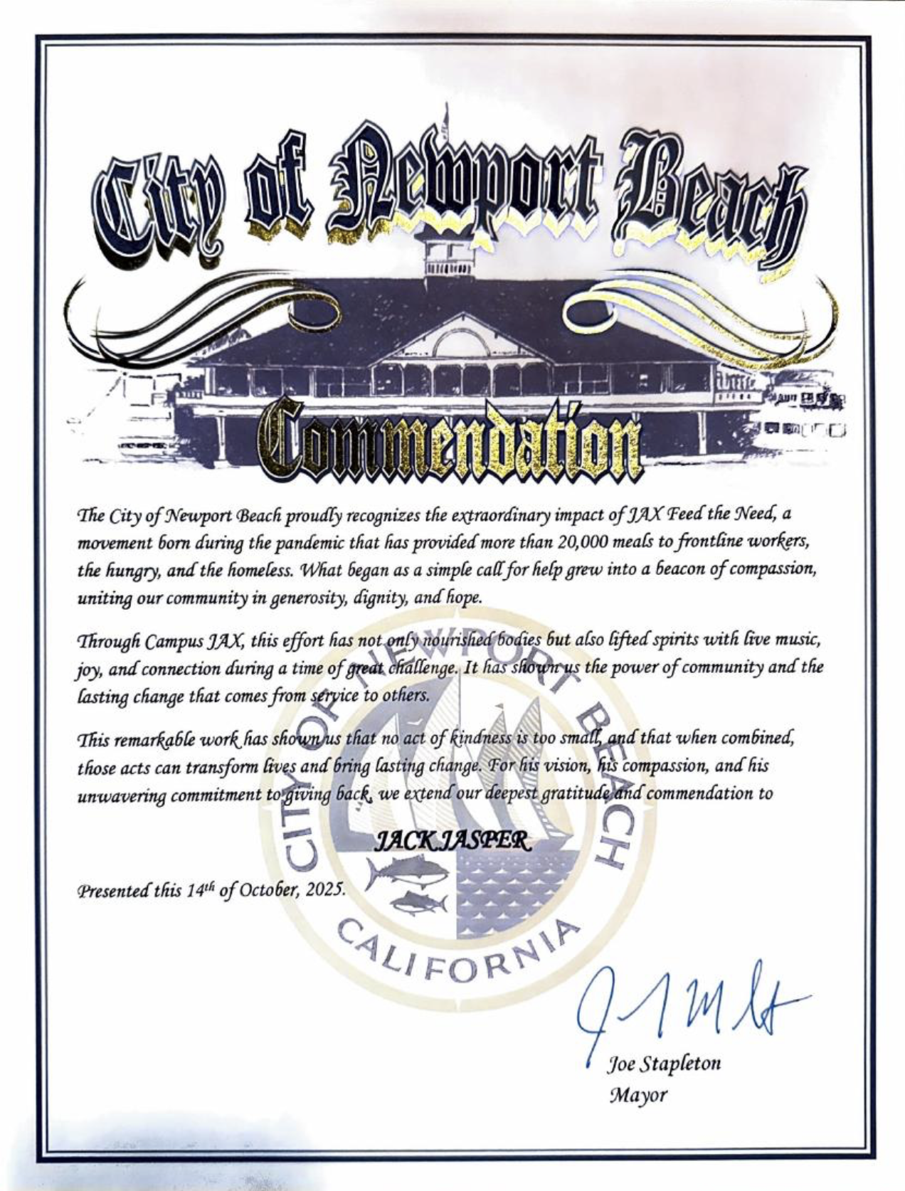 We’re honored to have received Congressional recognition and a special commendation from the City of Newport Beach in celebration of our continued commitment to the arts and our community.